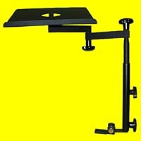 The patent pending support system by Jeniko is infinitely adjustable up-down, and has 360 degree rotation. Arm can be locked in virtually any position desired. The up and down adjustment goes from 15 inches in total height to 20 inches of total height without having to purchase any extra telescoping rods. Jeniko NO HOLES DRILLED Laptop Support features:· Patent pending support system· Telescoping base adjustment· Fully adjustable seat mount bracket· Fits virtually every vehicle· Tray fits all Netbook sized laptops· Computer mounting strips (Velcro strips)· Tabletop dimensions 7' x 10'· Overall height adjusts from 15' to 20'· Ergonomic tilt (tilt laptop to any position for comfort)· Custom machined Aircraft aluminum and steel design· Sleek Black finish· Removable by taking off 1 knob· Weight capacity 10lbs· Installation time: 5 to 10 minutes